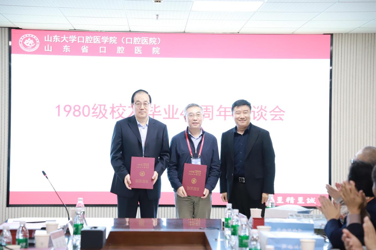 张青代表学院(医院)对1980级校友荣归母校表示热烈欢迎。他表示,1980级校友作为建系早期的口腔学子,是学院发展的亲历者,校友们扎根全国各地,以仁心守护口腔健康,用实干贡献行业,为母校赢得了广泛声誉,是全院师生学习的榜样。他强调,学院(医院)正处在改革发展关键时期,诚邀校友们积极参与学院(医院)发展建设,共同助力山大口腔医学事业迈上新台阶。