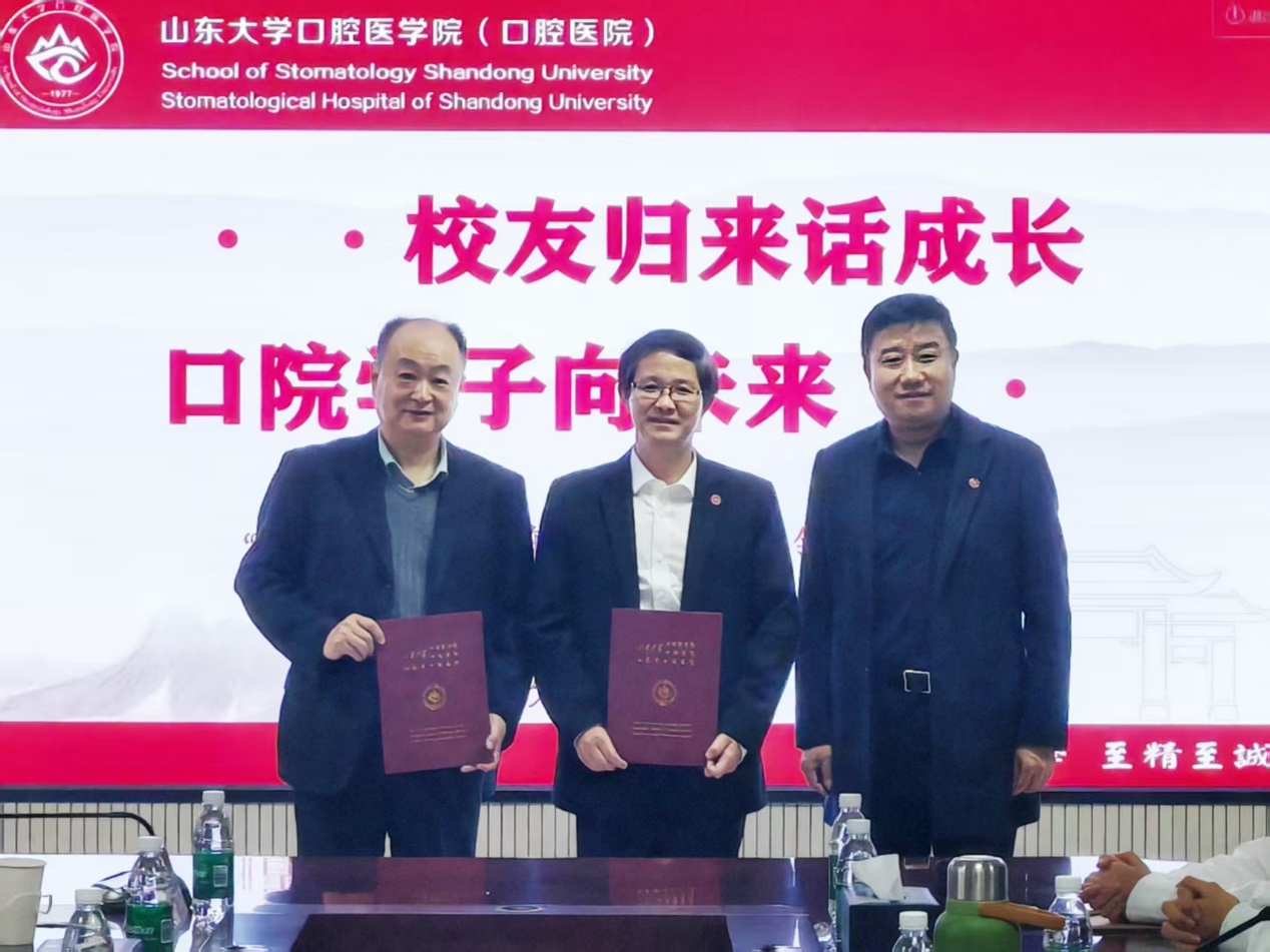 1980级校友,上海交通大学口腔医学院郑家伟教授、泰安市中心医院李晓光教授受聘成为了校友导师。1980级校友,山大口腔张君、王旭霞两位老师共同参加座谈。四位校友与同学们分享了自己在母校的学习经历与从业历程,强调了大学时期培养的学习能力和综合素质对于未来职业生涯的重要性,同时也结合自己的专业领域,分享了行业发展的最新趋势和前沿技术,鼓励学弟学妹们要敢于梦想、勇于追求,不断挑战自我,为成为一名卓越口腔医学人才持续努力。同学们也向学长学姐请教了有关学业职业规划、考研深造、实习就业、科研创新等方面的问题,并表达了以校友为榜样的决心和对未来发展的期待。整个座谈会交流气氛热烈,校友们的话语中充满了对母校的深厚情谊和对学弟学妹们的殷切期望。