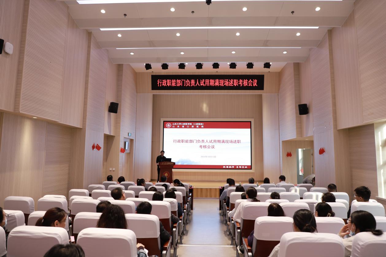 10月13日,山大口腔召开行政职能部门负责人试用期满现场述职考核会议,院党委书记张青、院长葛少华等领导班子成员出席会议,各教工党支部书记、临床医技科室、教研所、实验室等正副职及护士长参加会议。会议由葛少华主持。