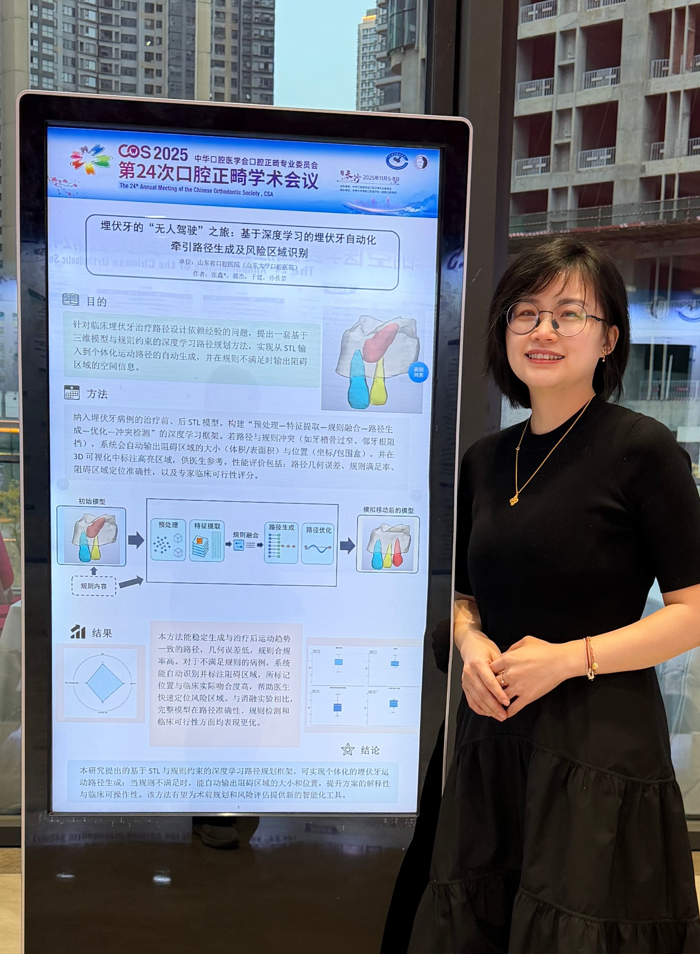 正畸科青年骨干的医教研成果亮相全国正畸年会壁报展示,彰显其锐意进取的创新思维与扎实的学术功底。中华口腔医学会口腔正畸专委会青年委员张鑫:《埋伏牙的“无人驾驶”之旅:基于深度学习的埋伏牙自动化牵引路径生成及风险区域识别》。孙长芸医生:《Effect of combination of CO2 laser and fluoride in enamel demineralization》。 博士后张嘉豪(导师:郭杰教授):《成人上颌双侧易位埋伏尖牙牵引一例》。