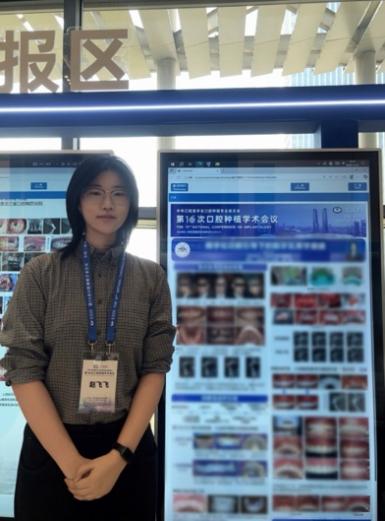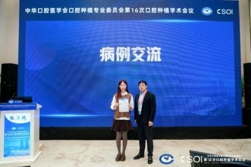 在临床研究论文交流专场,博士生孙绍庆分享了《基于 U0Net-MSFF-CBAM 模型的侧壁开窗上颌窦底提升术后移植骨材料自动识别与分割研究》、硕士生张清越分享了《先天性牙列缺损合并骨量不足:钛网辅助骨增量术的手术方案设计与临床实施》的研究结果,获得了评审专家与现场听众的高度评价和广泛赞誉。
