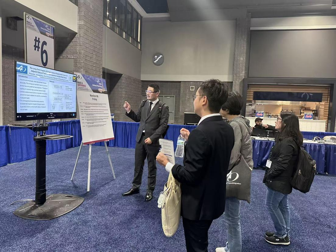 会议期间,邵金龙作了题为“The Long-Term Impact of Single Implant-Supported Crowns on Adjacent Natural Teeth: A Retrospective Longitudinal Study”的壁报报告。该项研究立足于牙周病学与种植学交叉领域,基于多年临床随访数据,系统评估单颗种植修复体对邻牙龋病等并发症的影响,为种植修复后邻牙并发症的发病风险和长期维护提供了重要的循证依据,引发了与会国际专家的广泛关注与深入交流。