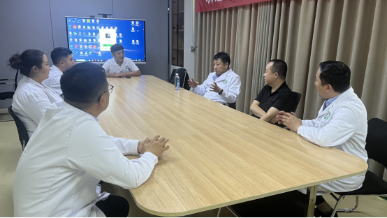 双方还就口腔医学合作发展工作进行了深入交流。疏勒县人民医院副院长项涛介绍了医院在学科建设、基础建设、人文服务等方面整体发展情况。贾钊汇报了援疆支医工作情况以及下一步工作计划。郭杰对贾钊的援疆工作成效给予充分肯定,他表示,希望贾钊在后续工作中充分发挥自身专业特长,严格落实 “院包科” 各项帮扶任务,为推动两院医疗协作从“输血式”帮扶向“造血式”共建深度转变,助力疏勒县人民医院口腔医疗服务水平提质升级。