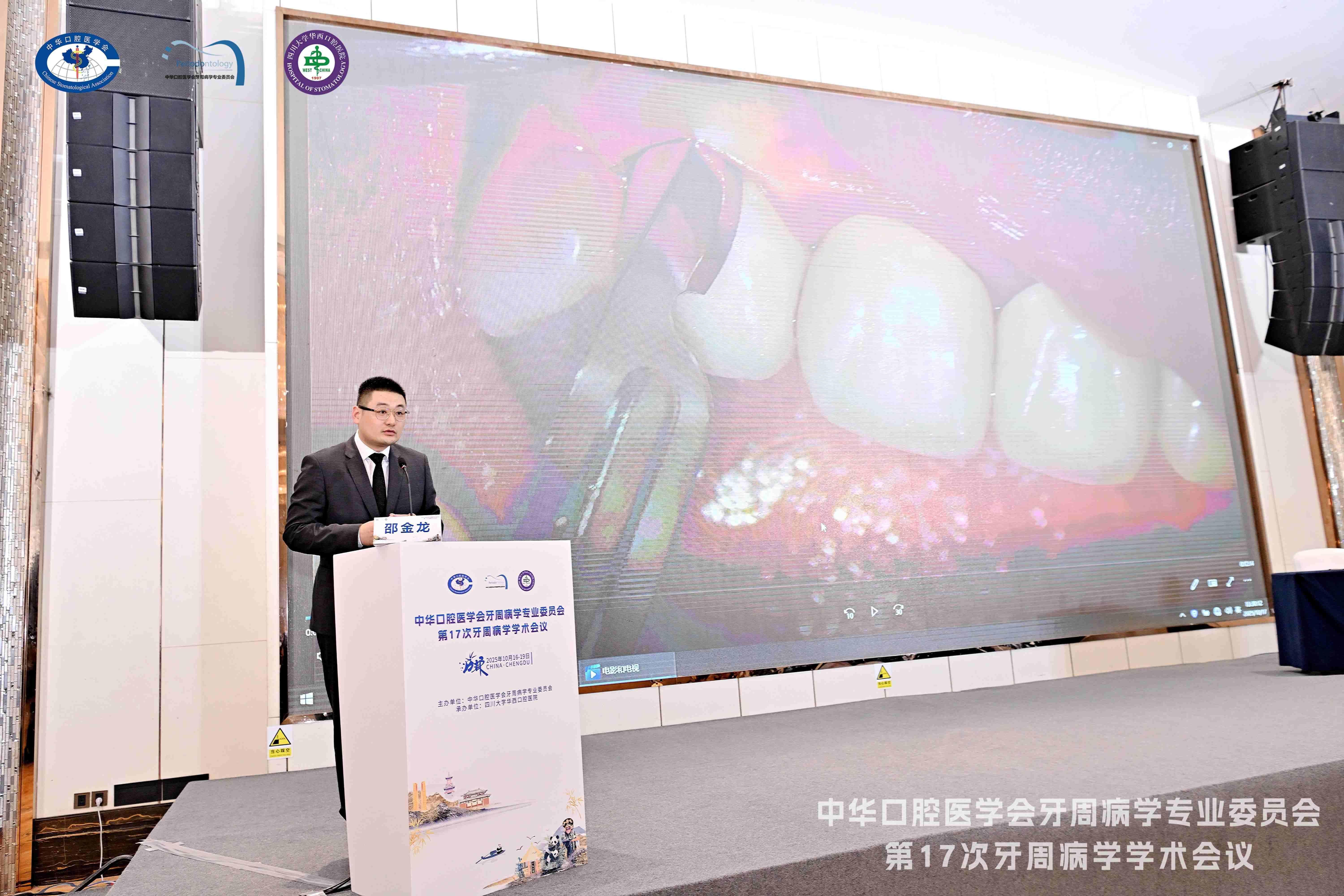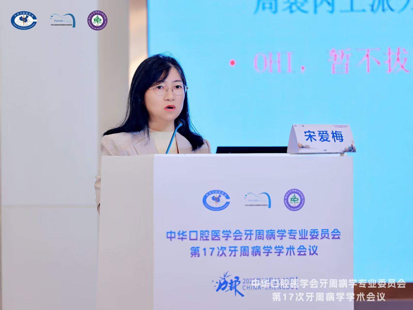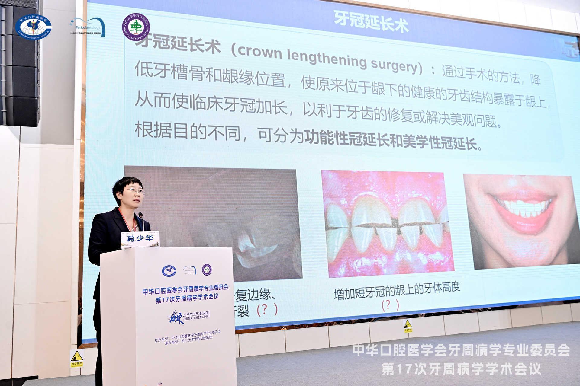 杨丕山就”牙周病与全身疾病相关关系“作了主旨演讲并主持讲座;宋爱梅针对“以牙周病为首发症状的药物相关颌骨坏死病例汇报及研究进展”进行了专题演讲,并作为嘉宾参与病例点评;院长葛少华与邵金龙参加午间课堂,针对“一步一步学牙周”内容,在午间课堂进行了牙冠延长术授课;刘红蕊代表我院在青年教师授课技能展示中讲解了“牙周脓肿”。