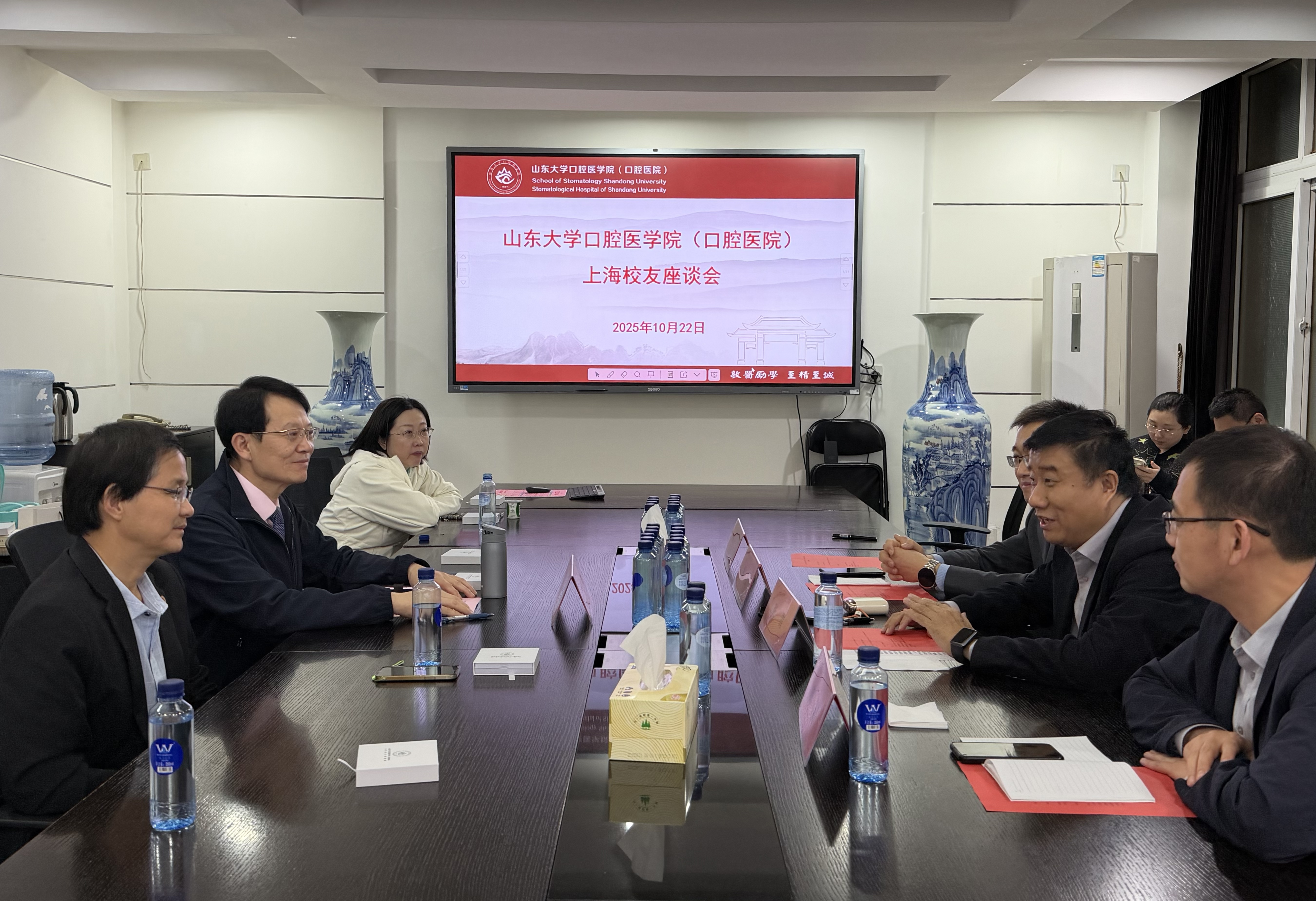 近日,山大口腔上海校友座谈会在上海交通大学医学院附属第九人民医院顺利举行。学院(医院)党委书记张青,党委副书记柳松,上海交通大学医学院附属第九人民医院郑家伟、张善勇等二十余位在沪校友代表参加会议。座谈会由郑家伟主持。