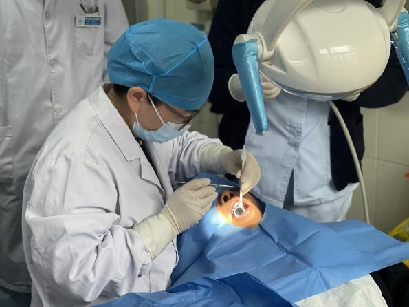 座谈会后,梁伟、周芹在当地医院口腔科开展了义诊活动,与科室医护进行交流,对该院口腔科未来发展规划提出了建设性意见。