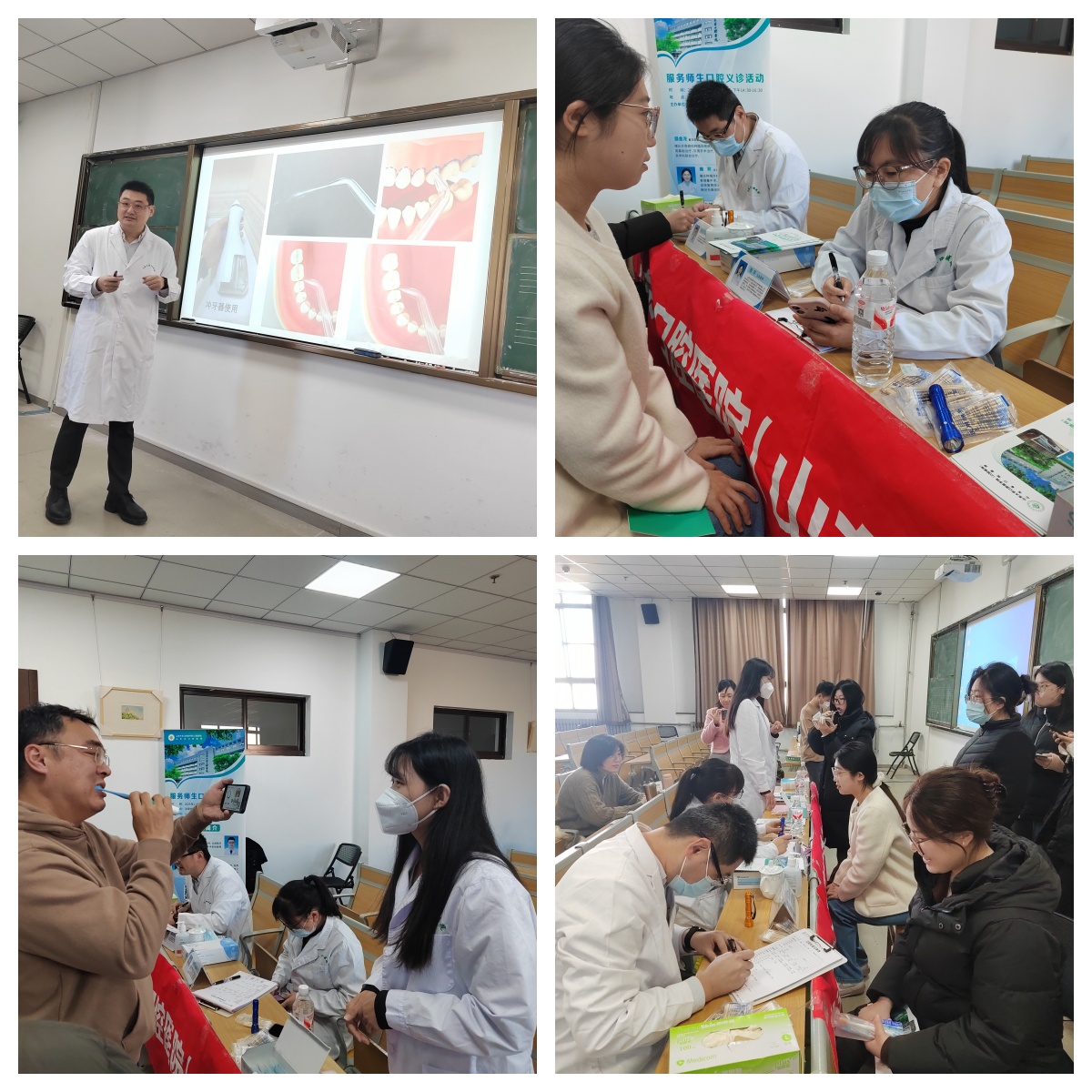科普讲座环节,邵金龙进行了牙周病学相关的科普讲座,内容紧扣牙周病学的核心理论与临床防治实践,首先结合最新的权威牙周病流行病学调查数据,深入剖析了牙周疾病的发病机制及关键风险因素;随后,依据现行牙周病诊断标准,配合多组典型临床病例,对牙周炎的发病机制、临床表现和预后进行了直观展示。在系统梳理牙周炎序列治疗全流程的基础上,讲座进一步聚焦于患者自我菌斑控制,对包括科学刷牙、牙线、牙缝刷和漱口水等口腔卫生维护细节进行了规范化指导,旨在全方位提升受众的牙周健康认知与疾病防治能力。义诊环节,专家们为前来咨询的师生医务员工进行了口腔检查,并针对不同年龄段师生的口腔特点,提供了个性化的健康指导。护士张晓燕为师生医务员工进行了正确刷牙方法示范,通过手把手教学,帮助师生们掌握了有效清洁口腔的技巧,纠正了以往错误的刷牙习惯。