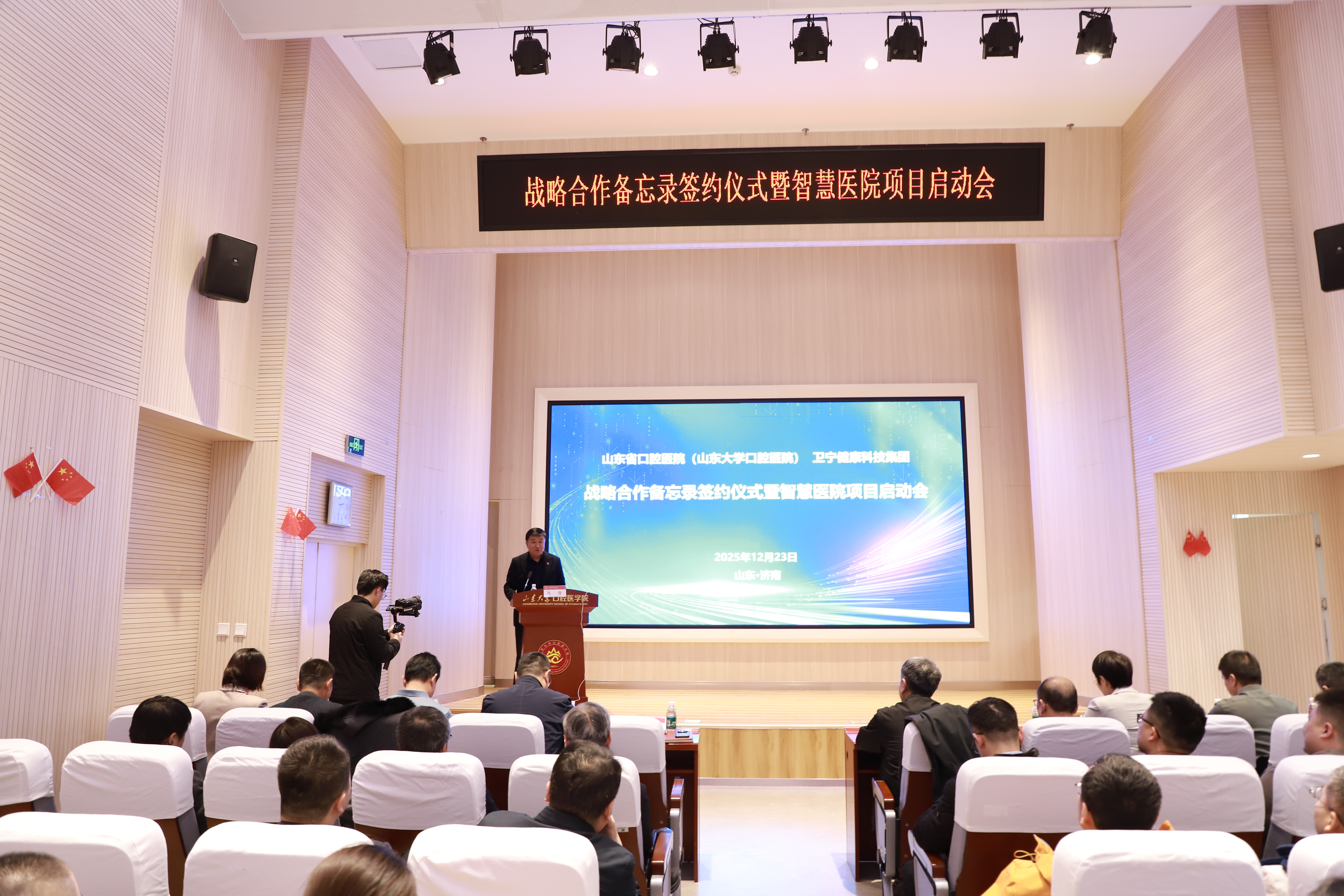 12月23日,山大口腔与卫宁健康科技集团战略合作备忘录签约仪式暨智慧医院项目启动会在学院(医院)C509报告厅举行。济南市大数据局总工程师田立忠,卫宁健康科技集团高级副总裁孙嘉明、山东大学数智化支撑研究院院长郭晓东,山大口腔党委书记张青、院长葛少华及全体领导班子成员出席活动。签约仪式由张青主持。
