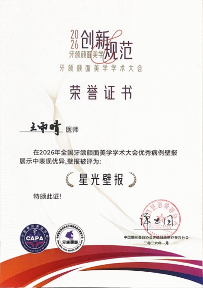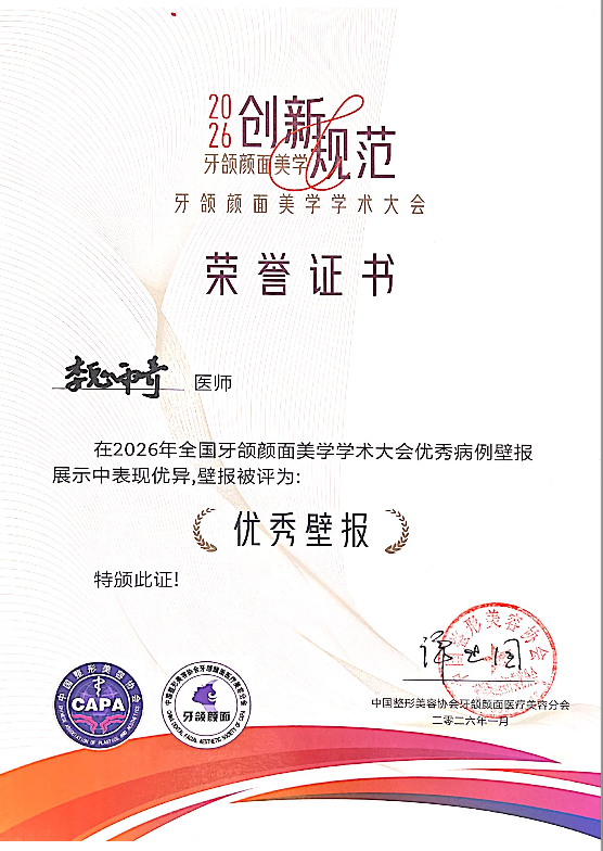山大口腔种植科朱震坤荣获2026牙颌颜面美学优秀病例展示活动卓越病例奖