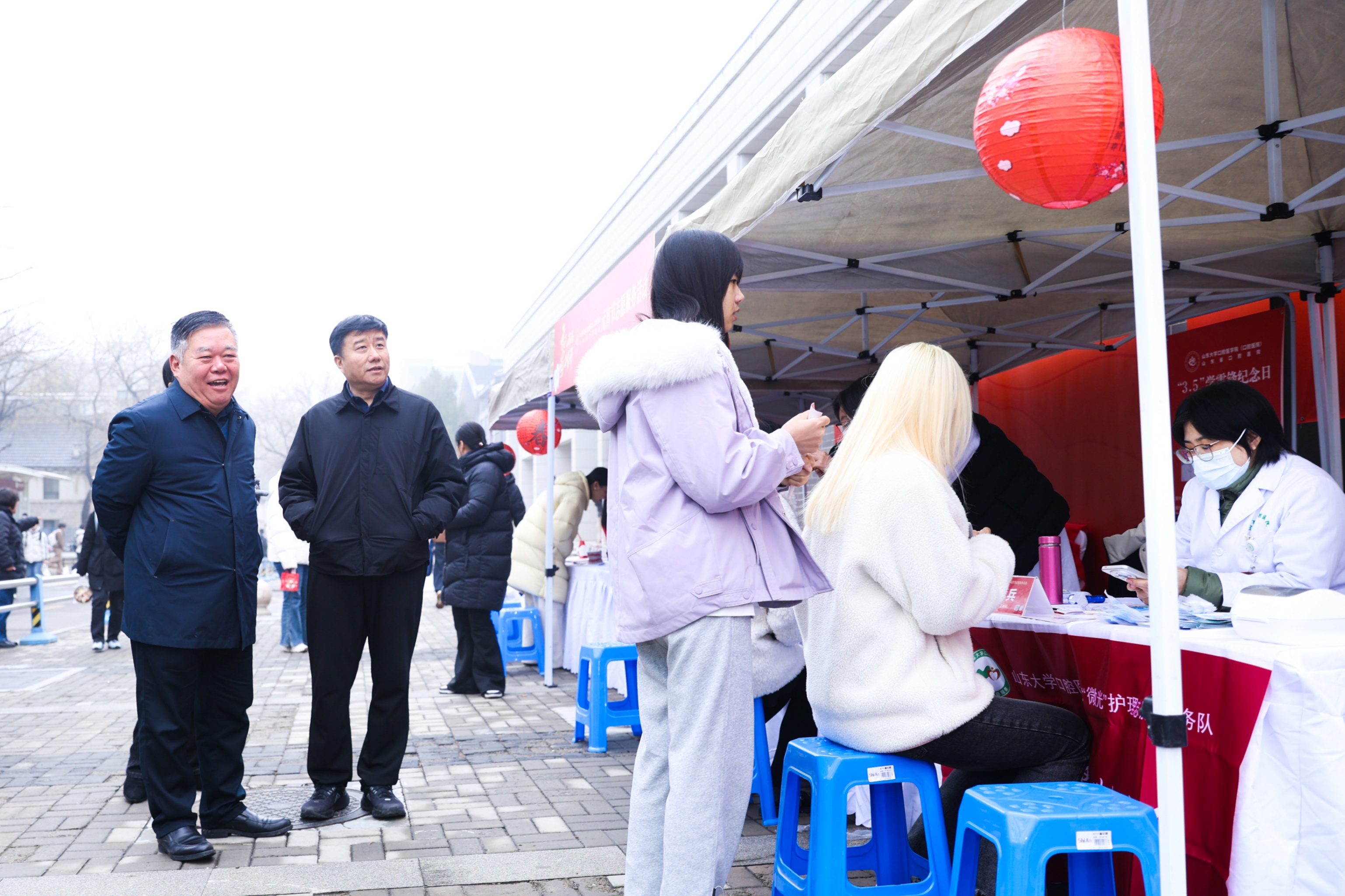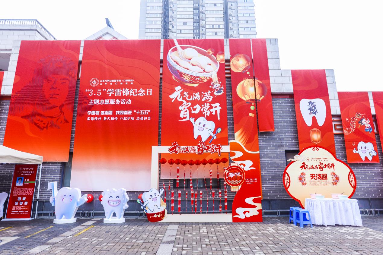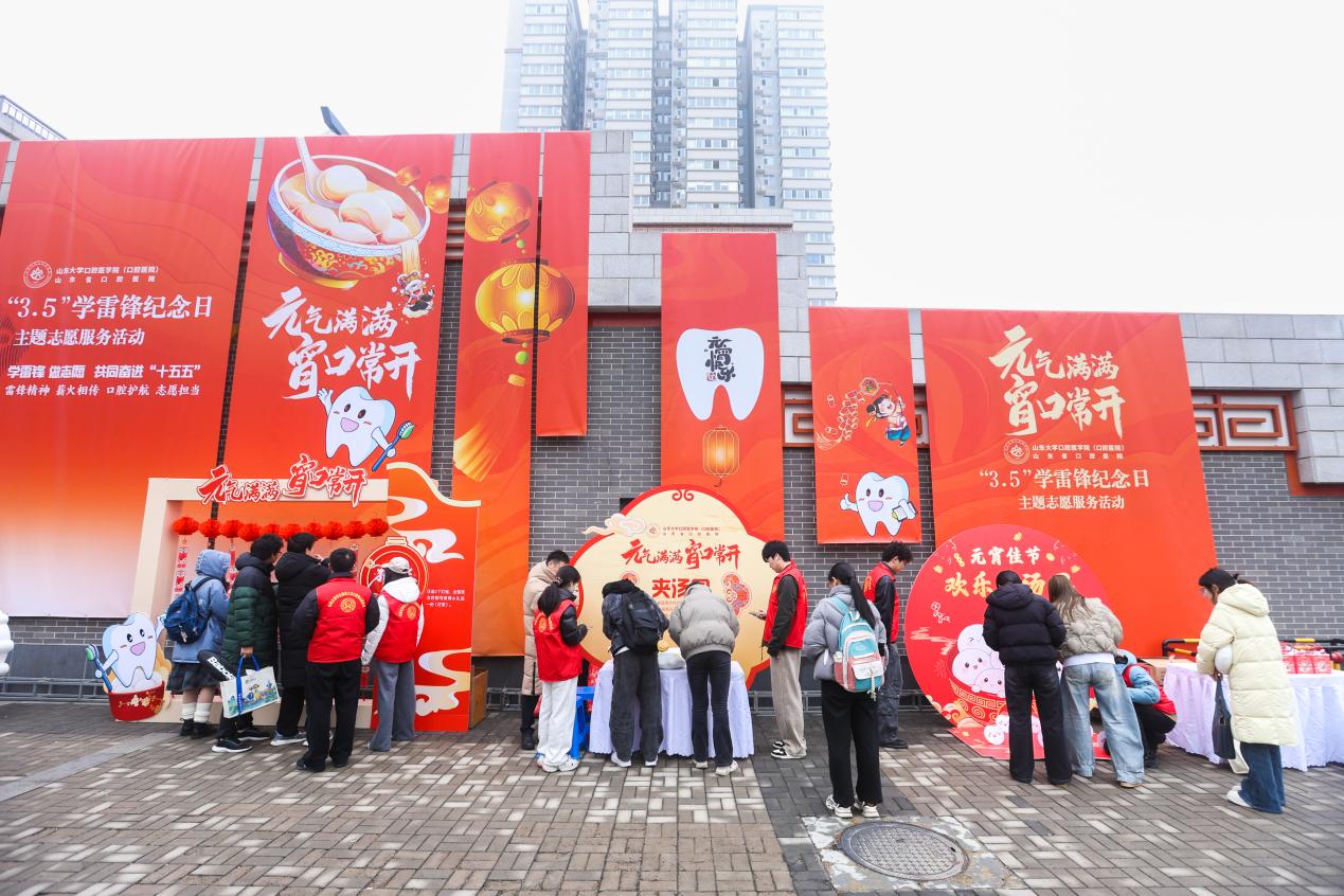 在第63个学雷锋纪念日到来之际,3月3日,农历正月十五元宵节,山大口腔“元气满满 宵口常开”学雷锋志愿服务活动在山东大学趵突泉校区火热开展。山东大学齐鲁医学院党工委副书记兼公共卫生学院党委书记赵福昌、齐鲁医学院学生管理办公室副主任孙钰、于茜,学院(医院)党委书记张青、副书记齐山华、副院长郭杰等莅临活动现场。