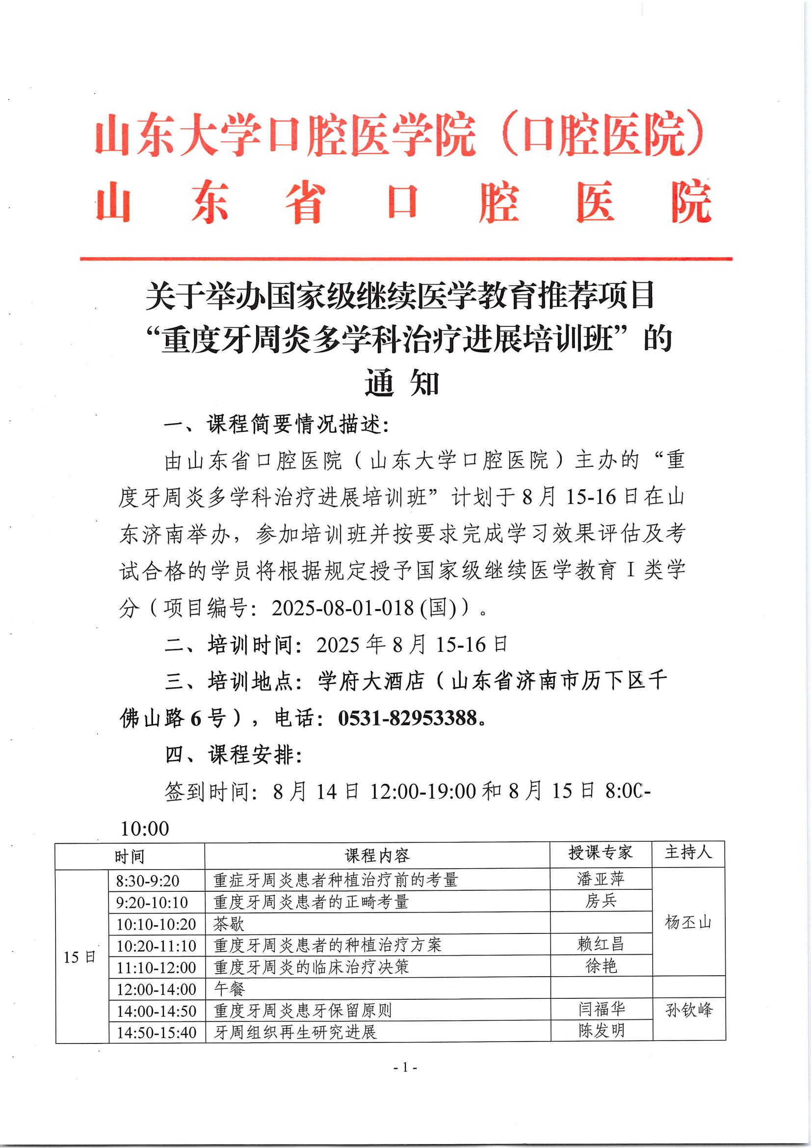 上一篇: 关于召开山东省口腔医院(山东大学口腔医院)牙周病专科联盟成立大会暨国家临床重点专科建设项目(牙周病科)技术培训推广会的通知
