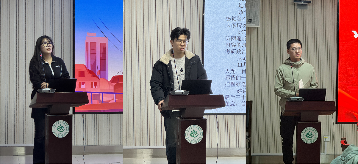 王君平结合自身备考的真实经历与感悟,分享了自己的备考“时间轴”,她提醒大家要提前规划、明确方向,打牢基础、循序渐进,在院校专业选择、复习计划制定、心态调节等同学们关切的重点领域,提供了具体可行的宝贵建议,并推荐了优质备考资源,给同学们带来一场干货满满的全流程备考指南。张弛聚焦于专业课备考,详细分享了他们自身的考研经历,建议大家搭建知识框架,通过真题分析命题规律,针对性地强化重点内容。杜明鹏不仅剖析了备考过程中可能遇到的困难及调适策略,还提醒大家合理规划时间,保持积极心态,坚定考研信念。交流互动环节,同学们踊跃提问,氛围热烈融洽,纷纷表示会以榜样为力量,科学备考、坚持不懈,早日实现自己的理想目标。